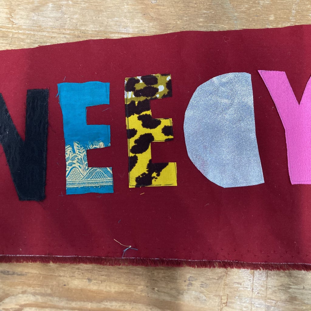 I made this in a workshop the other day. Not only to radically accept myself but also because the world hurls this at women, this word NEEDY, and I am so going to co-opt it and own it and love it.
