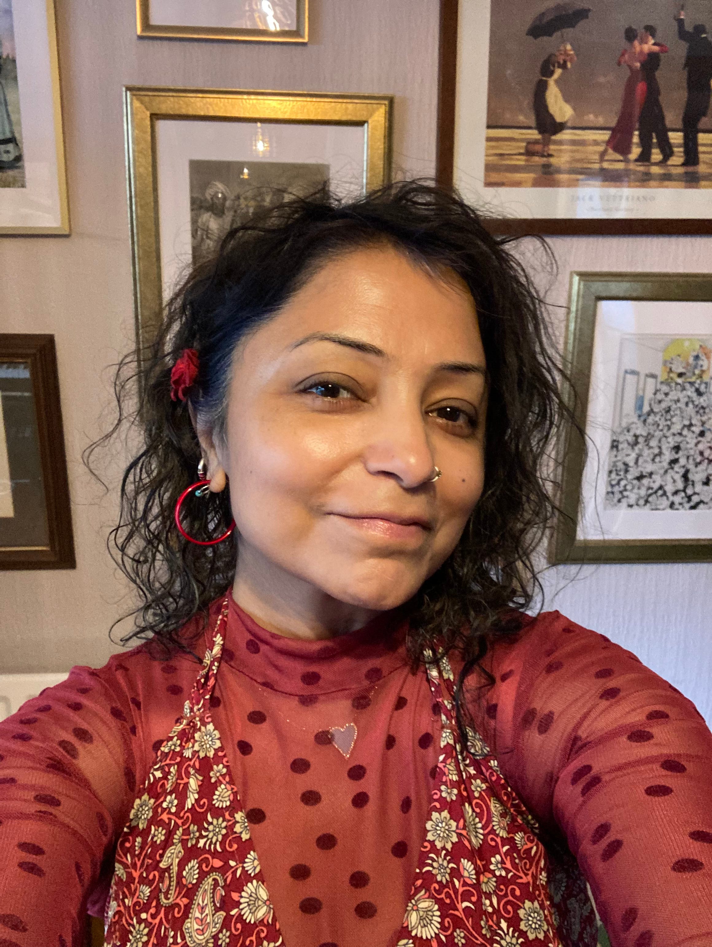 Here’s me, of course in charity shop clothes - what else? An early Valentine’s red top, you say? I say yes, yes it is.
